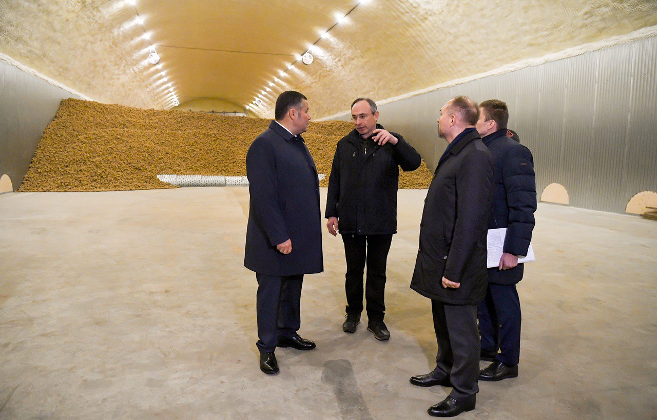 Перед началом мероприятия Игорь Руденя ознакомился с работой ООО «Экоагрофарминг», которое является одним из крупнейших производителей картофеля в Тверской области. Глава региона осмотрел хранилище, оснащенное современной системой вентиляции, цех чищеного картофеля. В 2024 году предприятием произведено более 27 тыс. тонн этой культуры, а также 5,1 тыс. тонн зерна, около 1 тыс. тонн рапса. Есть планы по выращиванию моркови и свеклы. Компания является получателем мер господдержки – в этом году она превысила 9,4 млн рублей, пользуется возможностями долгосрочной аренды через Росагролизинг.