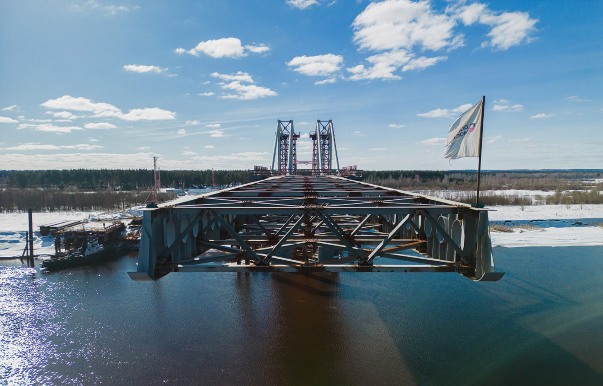 В Тверской области продолжается реализация одного из ключевых инфраструктурных проектов – строительство Северного обхода Твери. Его самым крупным и технически сложным объектом является мост через Волгу протяжённостью 738 метров. Пролёт сооружения в данный момент уже установлен над руслом реки – завершён четвертый этап надвижки пролётного строения.