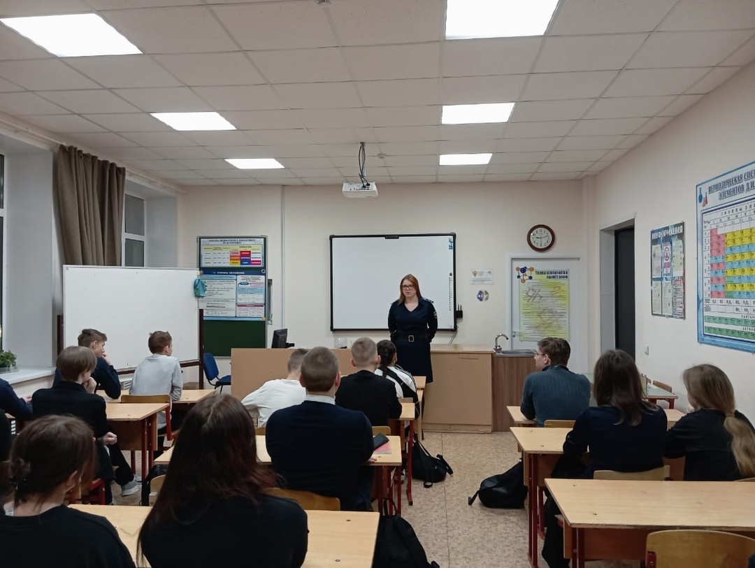 Сотрудница МВД России рассказала обучающимся о распространённых и новых способах мошенничества, привела статистику раскрываемости данного вида преступлений. Также школьники узнали о дистанционном мошенничестве – преступлениях, совершенных с использованием сети Интернет, банковских карт и мобильного телефона. В завершении ребята получили рекомендации по правилам безопасного поведения, соблюдение которых может помочь не стать жертвой мошенников, а также разобрали конкретные ситуации по основным правилам бдительного поведения.