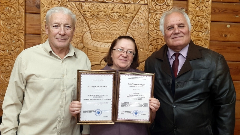 Решением наградной комиссии Межакадемического Союза академии национального образования и науки за культурно-просветительскую работу библиотека была удостоена Почетной грамоты. Библиотекарь Светлана Яковлева также получила Почетную грамоту Межакадемического Союза академии национального образования и науки. Заслуженную награду вручил президент Межакадемического Союза, лауреат Государственной премии Правительства РФ, профессор Юрий Клейберг.