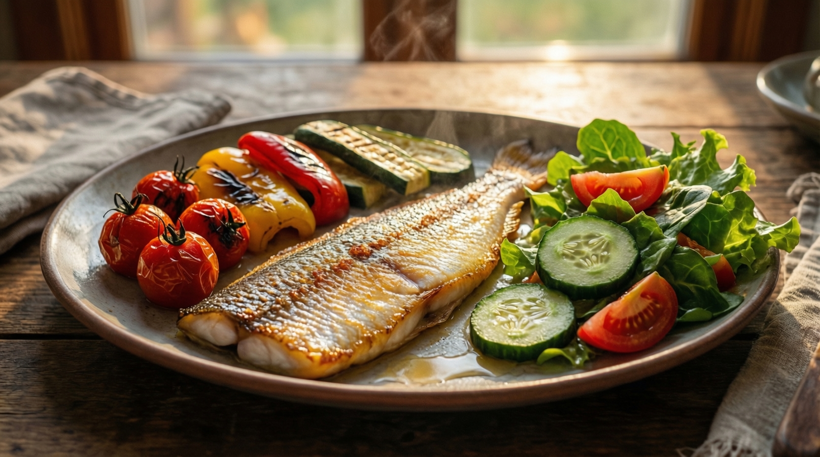 Диетолог рекомендует сочетать рыбу с зелёными листовыми овощами, сезонными овощами на пару, квашеной капустой, зелёными яблоками и лимоном.