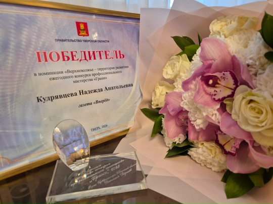 Из 230 поданных работ были выбраны победители в 14 профессиональных и специальных номинациях. В число победителей в номинации «Тверская область – территория развития» вошла главный редактор редакции газеты «Вперед» Калязинского округа Надежда Кудрявцева за статью «Фермеры на земле, как ее сердце», в которой она рассказывает о КФХ Ивана и Ольги Бурцевых «Тверская ягода» из деревни Василёво Калязинского округа.