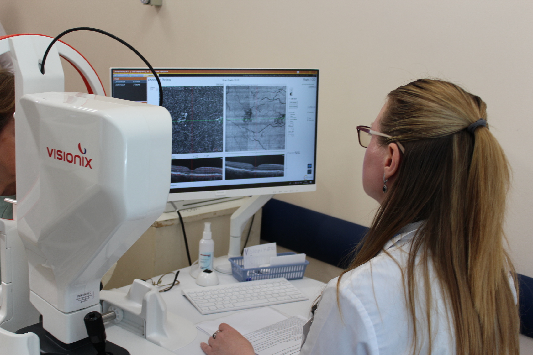 На сегодняшний день в Региональном центре полностью оснащены кабинет первичного осмотра и лазерная операционная для поддержания офтальмологического здоровья пациентов. Особая гордость центра – кабинет ангиографической когерентной томографии глаза, или ангио ОКТ. Этот аппарат последнего поколения – единственный в Тверской области. Исследование помогает выявить ранние изменения в сосудах и остановить прогрессирование патологии. При ангио ОКТ определяются участки ишемии, гематом, признаки отслойки сетчатки глаза.