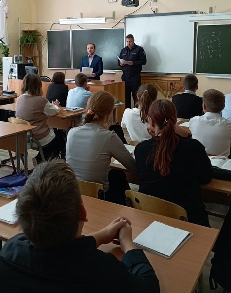 Работник прокуратуры Калязинского МО и представитель Росгвардии рассказали старшеклассникам о правилах безопасного поведения при обнаружении постороннего предмета, о необходимых действиях при возникновении захвата здания террористами, а также при угрозе атаки БПЛА.