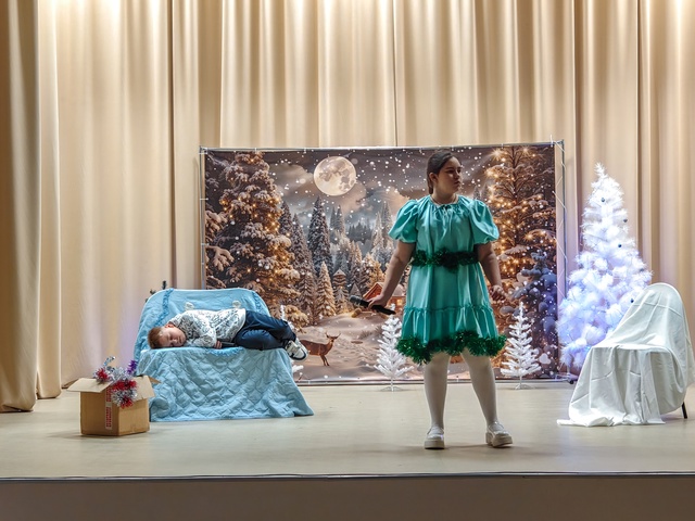 Юные артисты представили спектакль «Вовкина ёлка, или Сон в новогоднюю ночь», которые были подготовлены под началом педагогов Юлии Новиковой и Натальи Виноградовой. Учащиеся Вескинской школы встретили гостей с энтузиазмом и благодарностью. Советник директора по воспитанию Татьяна Борисова подготовила встречу и провела развлекательные мероприятия с детьми. Следующей точкой в гастрольном туре ребят станет деревня Стан.