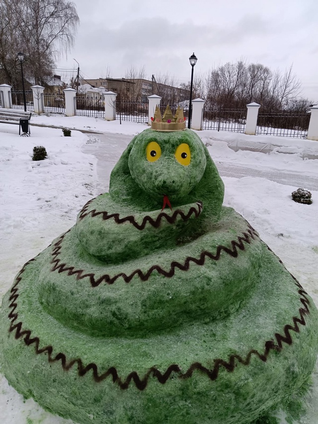 Бежечане, как и все россияне, готовятся к встрече Нового года. Музейный дворик Бежецка уже украсили символом наступающего 2025 года, который встречает посетителей.