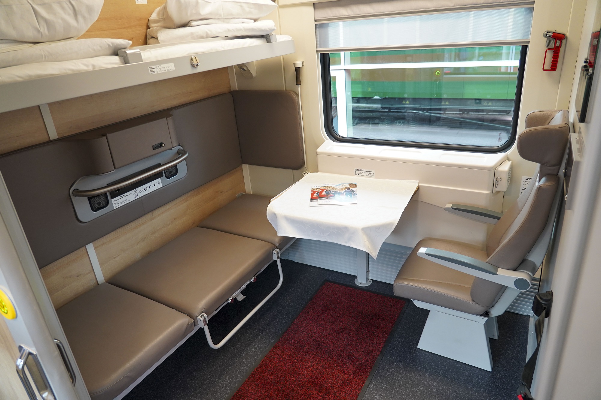 Среди технических новинок вагона – кондиционер с увеличенной холодопроизводительностью для регулирования температуры воздуха в каждом купе, подъемное устройство, позволяющее поднять коляску с низкой платформы. В каждом купе представлены информационные дисплеи с отображением температуры, громкости звука, времени и занятости санитарных узлов и душевой.