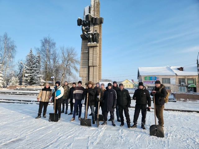 Осужденные Бежецкой ИК-6 под руководством сотрудника УФИЦ очистили от снега площадь вокруг обелиска Победы.