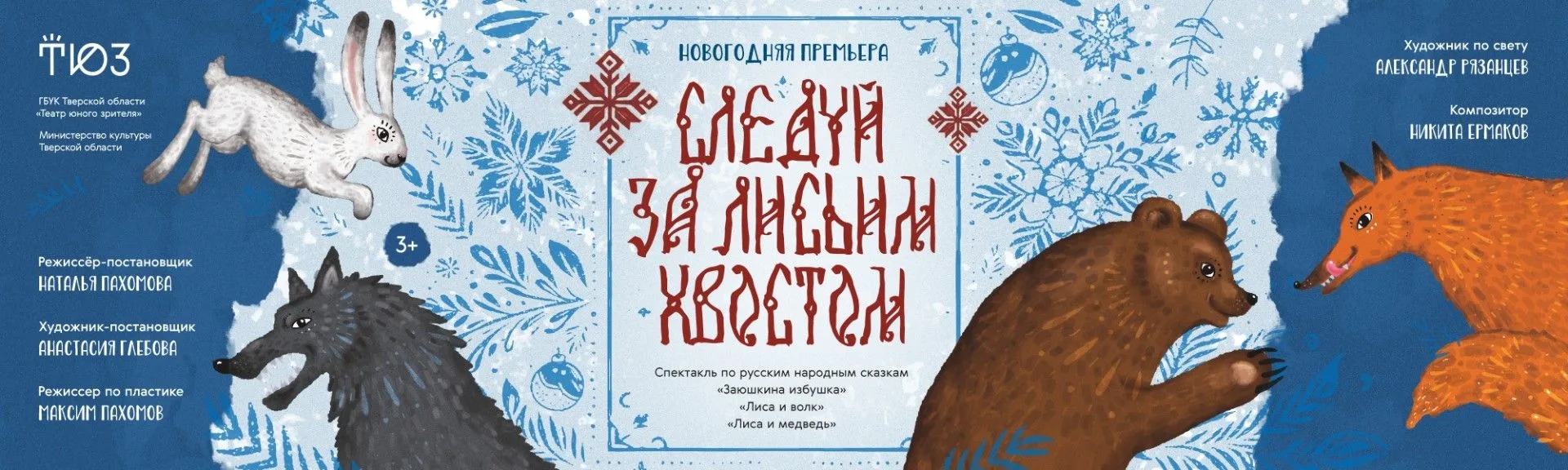 Тверской ТЮЗ в ближайшие дни приглашает ребят и их родителей на премьерный спектакль «Следуй за лисьим хвостом» (0+), в основу которого легли известные русские сказки «Заюшкина избушка», «Лиса и волк», «Лиса и медведь». Режиссером-постановщиком выступила Наталья Пахомова.
