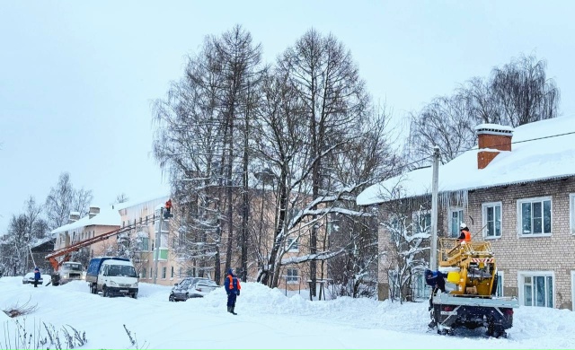 В Лихославле управляющая компания проводит работы по зимнему содержанию домов и дворов.