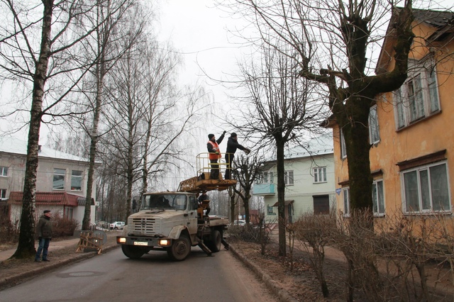 В Нелидове на этой неделе начали работы по кронированию деревьев и спилу веток разросшихся кустов.