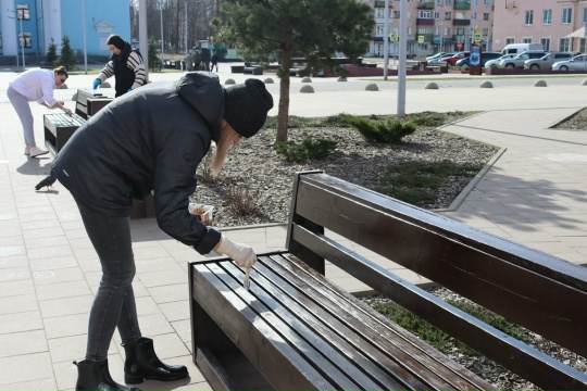 Теперь подошла очередь площади Ленина. Сотрудники администрации приводят в порядок любимое место отдыха горожан: красят скамейки и убирают территорию.