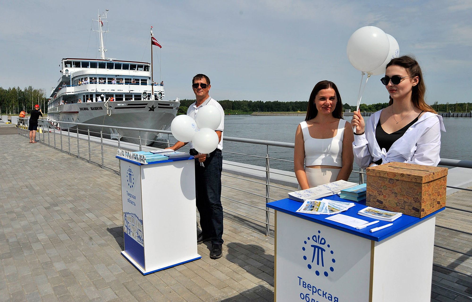 Пассажиров лайнера «Зосима Шашков» в порту «Завидово» встретил творческий народный коллектив «Каравай» из Мокшино. На мобильных информационных стойках Минтуризма Тверской области каждый желающий мог отправить памятную открытку близким, а также получить информационные буклеты и карты. Встречающая компания-туроператор подготовила в подарок сладкие сувениры – тверские пряники.