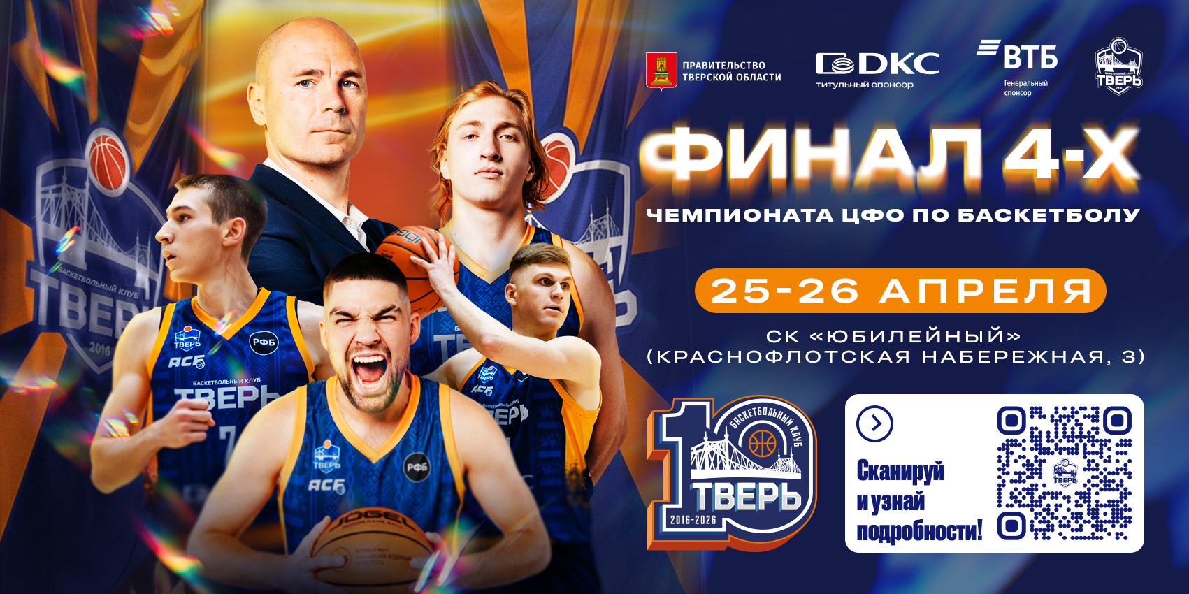25-26 апреля Дворец спорта «Юбилейный» в Твери станет площадкой «Финала четырех» Чемпионата Центрального федерального округа по баскетболу среди мужских команд. Это будет самое масштабное соревнование в истории турнира и абсолютный рекорд для тверского баскетбола по количеству болельщиков – более 4400 человек.