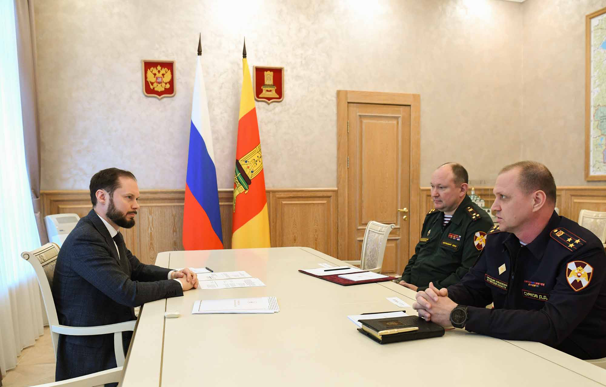 Временно исполняющий обязанности губернатора Виталий Королев провёл встречу с начальником Управления Росгвардии по Тверской области Дмитрием Сурковым.