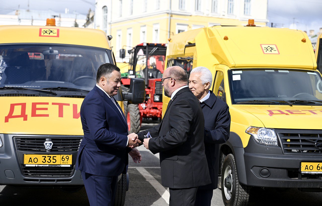 27 августа в Твери по традиции состоялась торжественная церемония вручения специального автотранспорта учреждениям образования Верхневолжья. Губернатор Игорь Руденя передал представителям муниципалитетов ключи от 31 единицы техники – 25 современных школьных автобусов и 6 тракторов для обучения старшеклассников первой профессии. В мероприятии принял участие депутат Государственной Думы РФ, руководитель фракции «Единая Россия» Владимир Васильев.